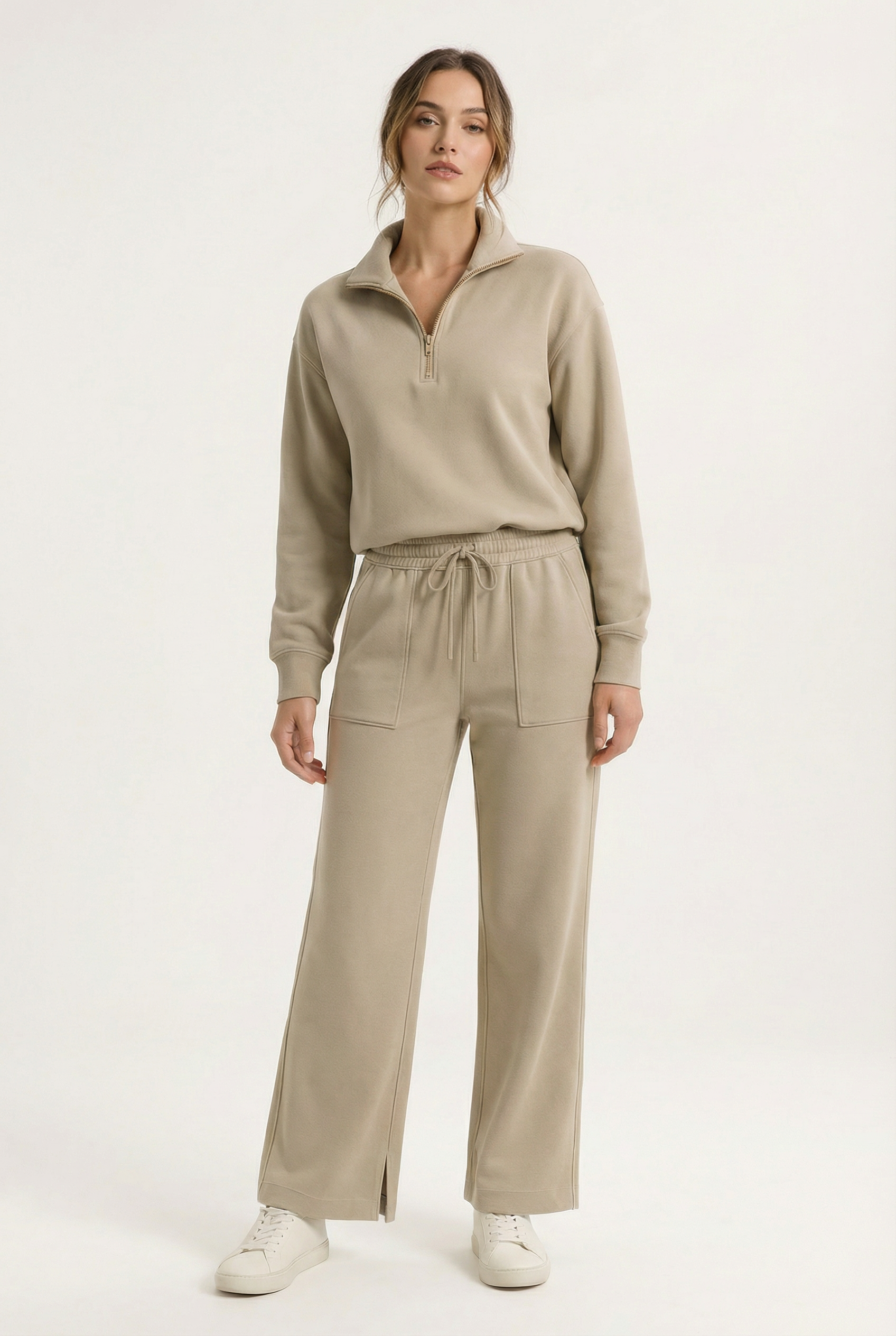 Designed to pair seamlessly with the Marlow Half-Zip Jacket, this set delivers a clean, polished aesthetic perfect for travel, errands, lounging, or casual studio-to-street days. The Marlow Wide-Leg Jogger offers the perfect blend of softness, movement, and elevated minimal design — making it your new go-to for effortless athleisure style.